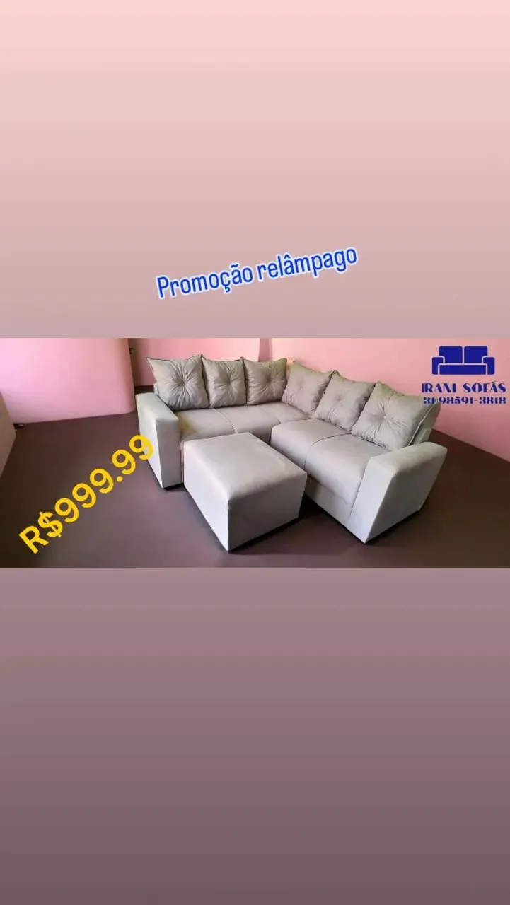 ?Sofá de canto cinco lugares tecido suede bege claro confortável e elegante, ideal pra sua sala. Design moderno e perfeito pra relaxar e receber visitas. Aproveite a promoção relâmpago! Adquira já pelo WhatsApp 319... ver número Entregamos em todo vale do aço Pagamento só no ato da entrega ?