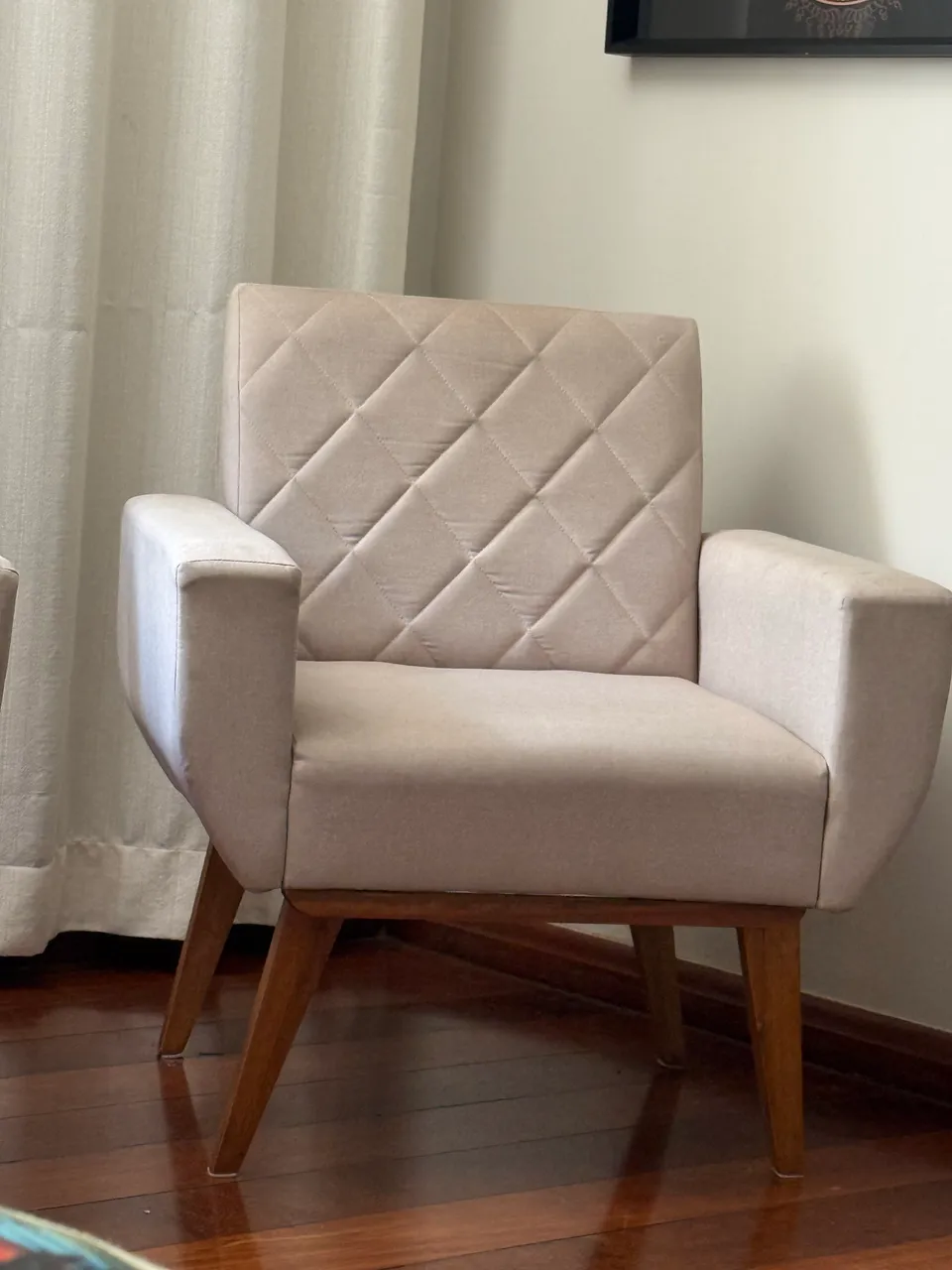 Linda poltrona com design moderno e elegante. Perfeita para relaxar e decorar seu ambiente com estilo e conforto. Precisa de Manutenção nos pés. Retirada por conta do comprador. Temos 2 unidades. Levando 2, conseguimos fazer por R$600,00.