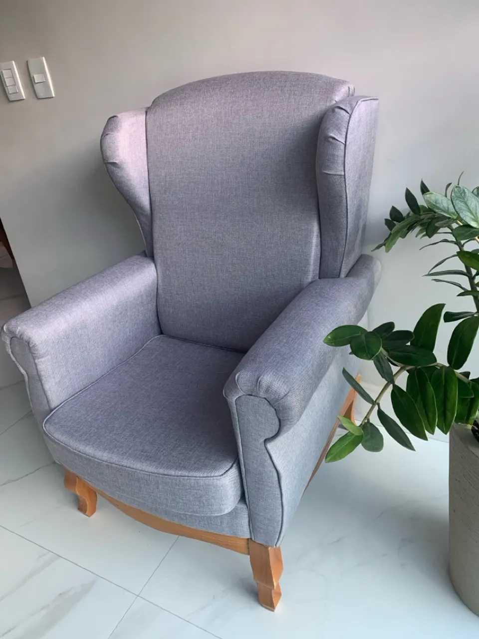 Poltrona confortável e elegante em linho cinza