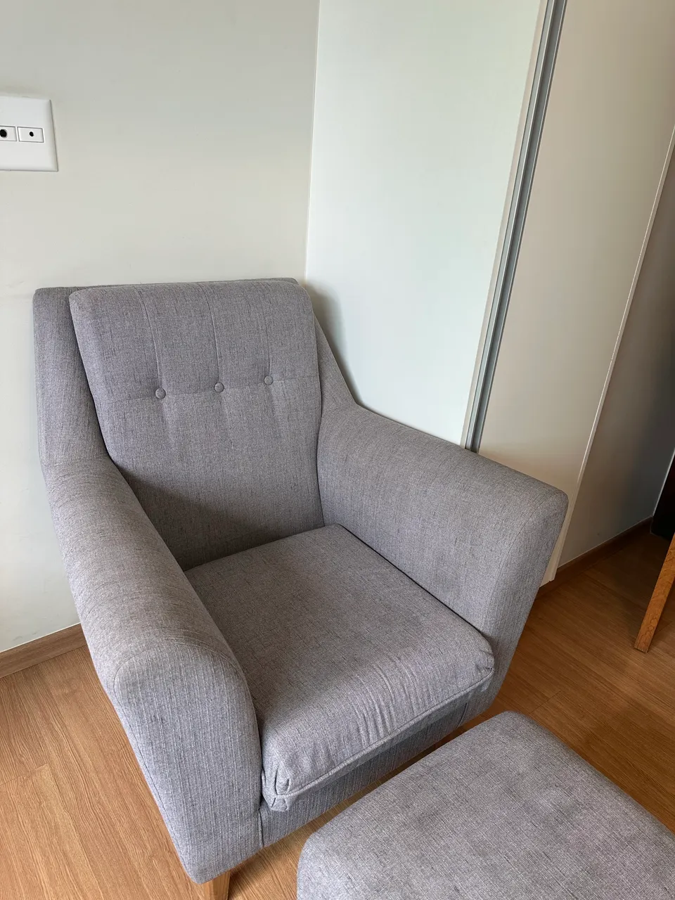 Poltrona de amamentação cinza de linho em perfeito estado de conservação. Não entrego. NÃO NEGOCIO VIA ZAP, SOMENTE PELO CHAT DA PLATAFORMA.