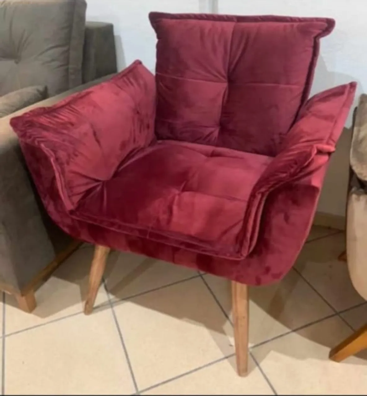 Conjunto de 2 poltronas Opala novas sendo 1 azul e 1 bordô conforme fotos. Design moderno e almofadas confortáveis. Perfeitas para relaxar e decorar sua sala de estar ou Salão. Possuem pés de madeira que agregam elegância ao ambiente. De 399,00 por 239,00 à vista cada, preço de ultimas peças, parcelamos com a taxa da maquininha. Frete a combinar.