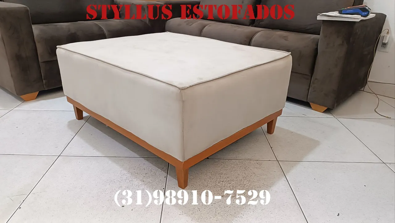 Puff central de luxo com base de madeira, design moderno e elegante. Perfeito para complementar a sua sala, agregando sofisticação e conforto ao ambiente. Por R$399, a vista ou R$499, no cartão de crédito entregamos em toda a BH e região encomenda através do whatsapp (31)... ver número