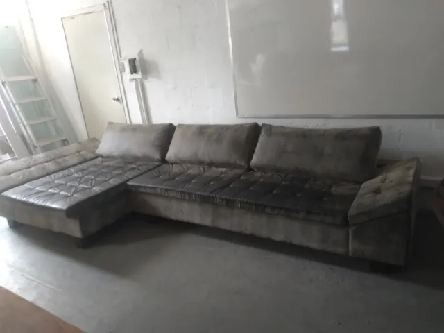 Sofá de canto em couro, confortável e espaçoso, perfeito para relaxar e receber amigos e familiares. Ideal para salas grandes, comprimento 2,75m x largura 1,50m x altura 40cm