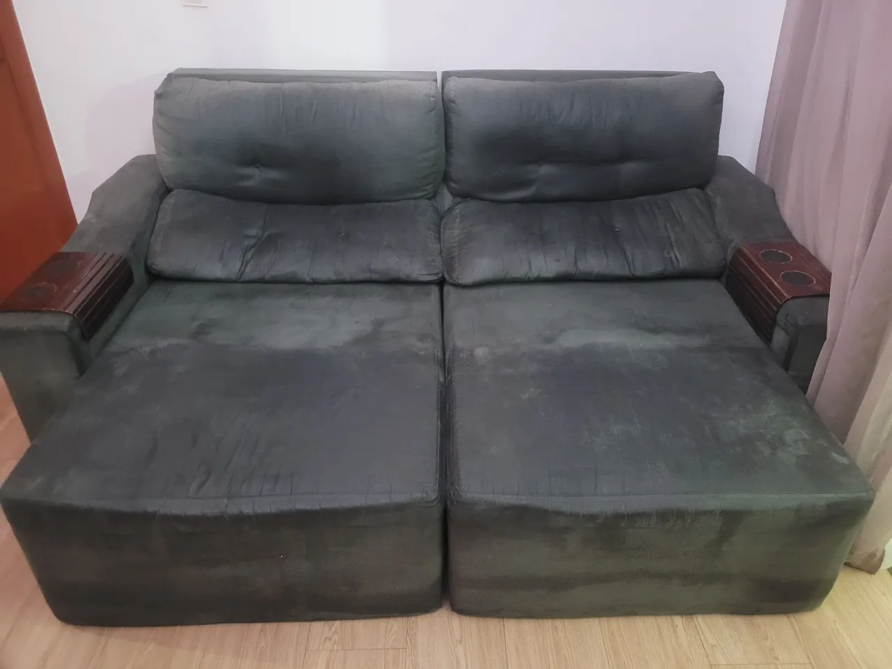 Sofá confortável e espaçoso para sua sala. Perfeito para relaxar e aproveitar momentos de descanso. Design moderno e elegante que combina com diversos estilos de decoração. Tecido suede. Medidas 107 largura por 2,25 de comprimento aberto medindo 1metro 50 cm.
