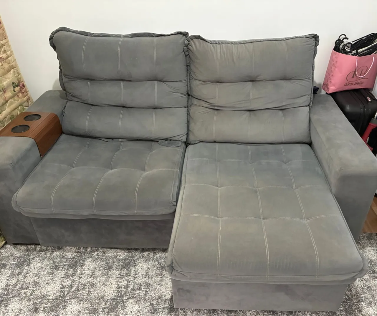 Sofá confortável e espaçoso, perfeito para relaxar e aproveitar momentos de descanso. Ideal para sua sala de estar, oferecendo um design moderno e elegante.