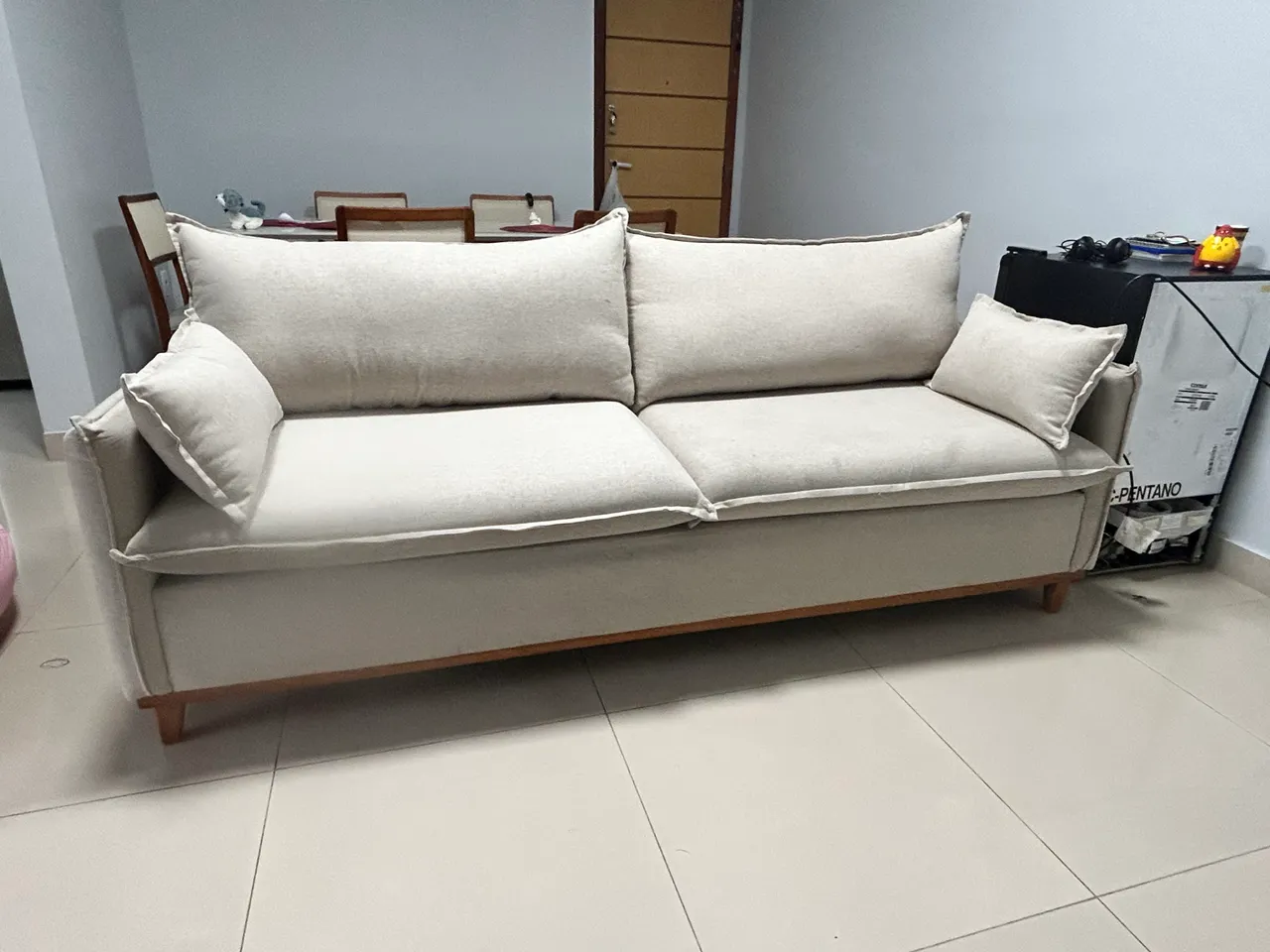 Apresentamos um sofá elegante e confortável, com 210 cm de comprimento, ideal para compor sua sala de estar. Design moderno e sofisticado que se adapta a diversos estilos de decoração. Proporcione momentos de relaxamento e bem-estar para você e sua família.