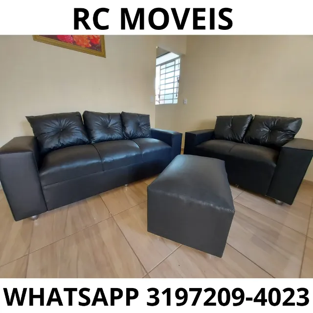 Sofá 3 e 2 Lugares com Puff em Couro Sintético - Conforto e Durabilidade