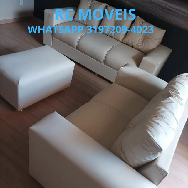 Sofá 3 e 2 Lugares com Puff em Couro Sintético - Qualidade e Durabilidade