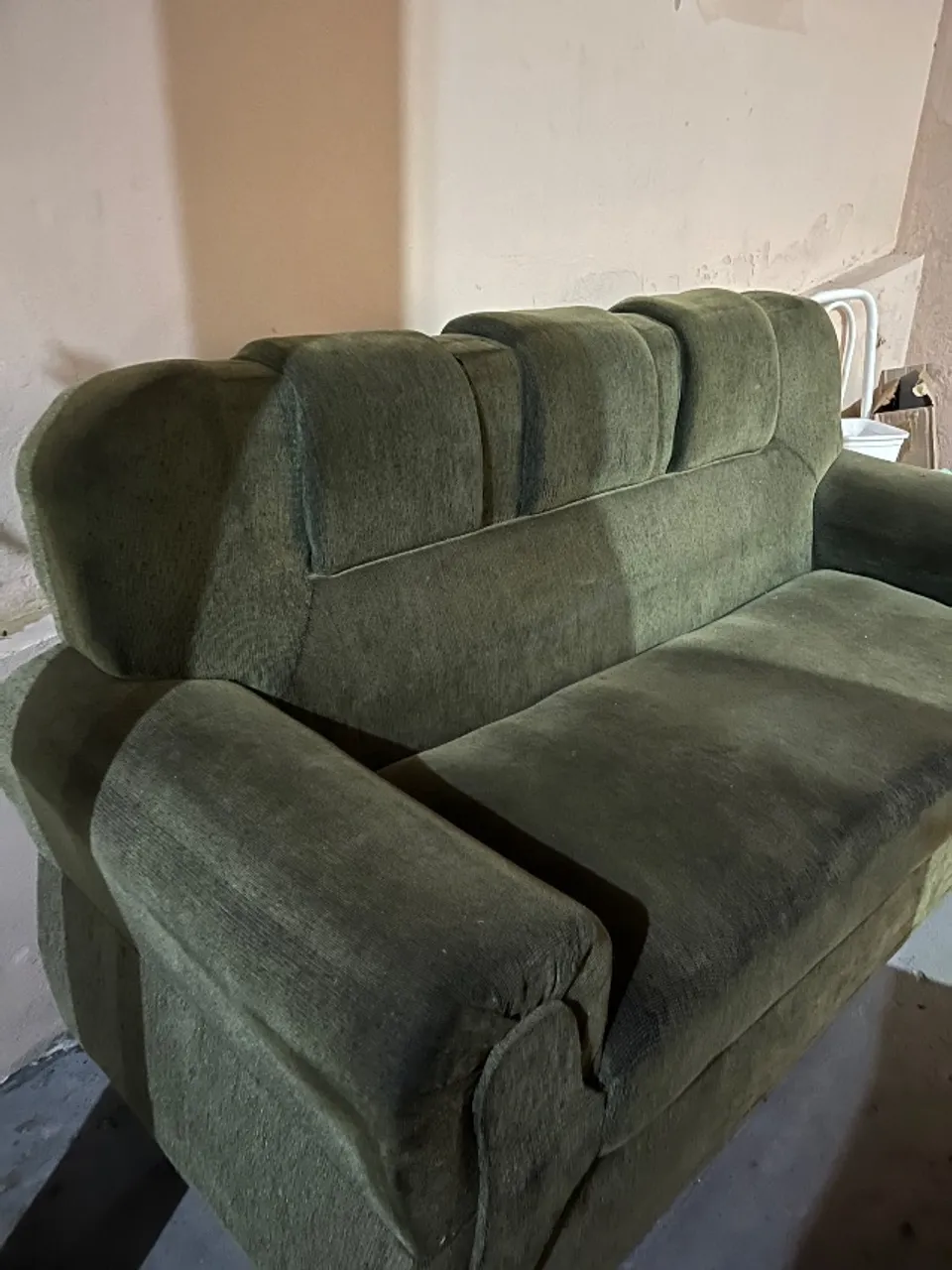 Vendo sofá de 3 lugares, na cor verde, em bom estado estrutural.