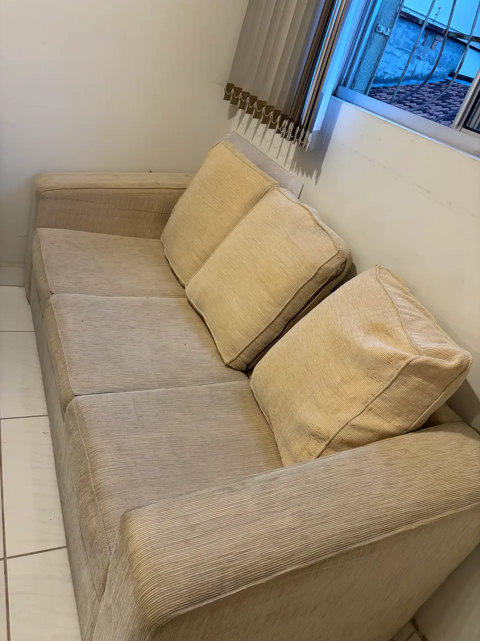 Sofá confortável para 3 pessoas, ideal para sua sala de estar. Tem 3 almofadas. Está conservado.