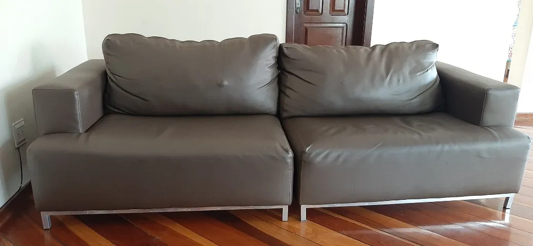 Sofá 4 lugares em corino, perfeito para sua sala. Obs. Botão de enfeite de uma das almofadas está solto.