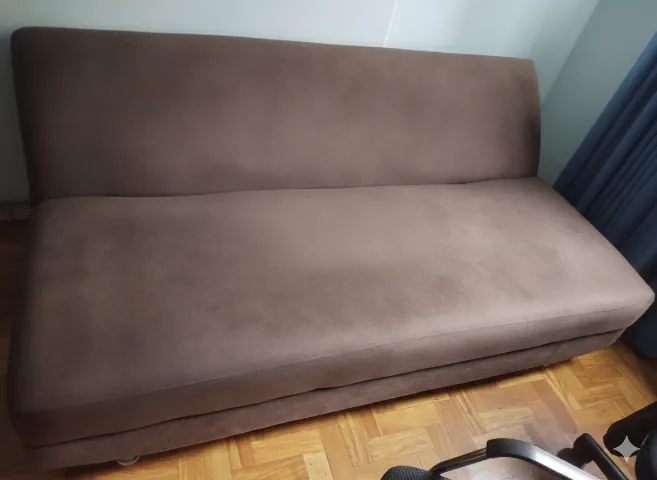 Sofá cama em suede na cor marrom, perfeito para otimizar seu espaço com conforto e elegância. Ideal para sala de estar ou quarto. Acompanha um poof para os pés e uma almofada ( na cor marrom)