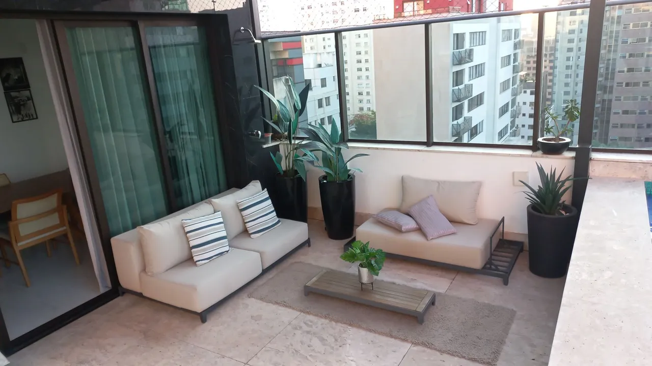 Sofa de área externa em tecido impermeável, sofisticado, com pés em ferro galvanizado, ultraresistente. Dois módulos separados, com poltronas soltas. Laváveis e de alta densidade.
