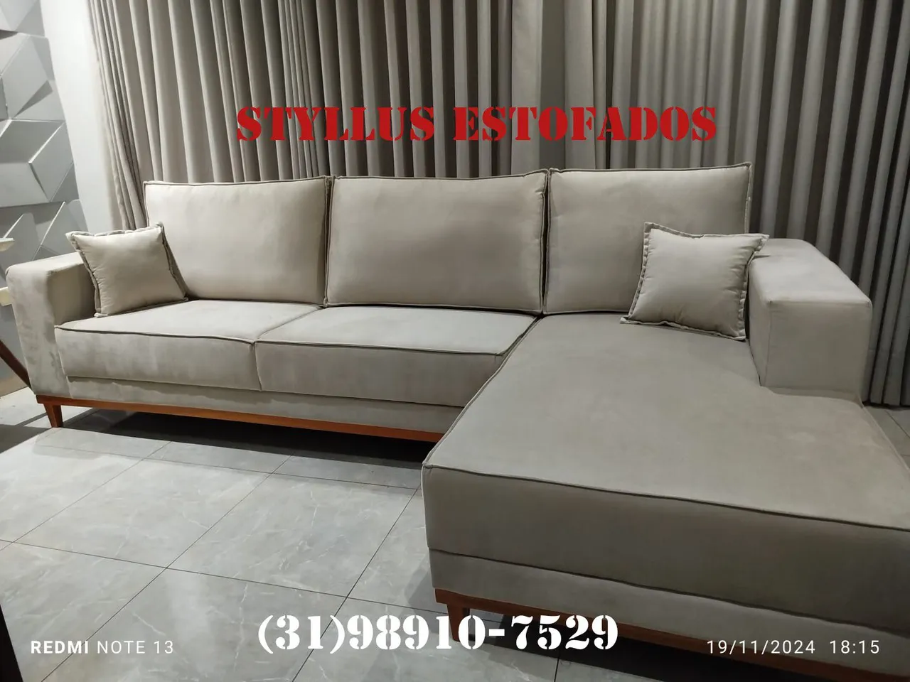 Sofá de canto elegante e confortável, ideal para complementar a decoração da sua sala de estar. Perfeito para relaxar e receber amigos e familiares. Design moderno e clean, revestido em tecido de alta qualidade. Aproveite essa oportunidade! Por R$2799, a vista ou R$2999, no cartão de crédito entregamos em toda a BH e região encomenda através do whatsapp (31)... ver número