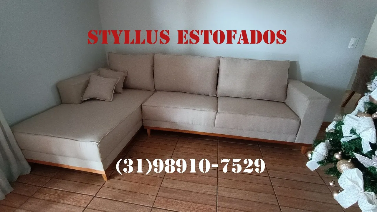 Sofá de Canto Estofado Novo, com design moderno e elegante, ideal para sua sala de estar. Conforto e qualidade para você relaxar e receber seus amigos. Por R$2799, a vista ou R$2999, no cartão de crédito entregamos em toda a BH e região encomenda através do whatsapp (31)... ver número