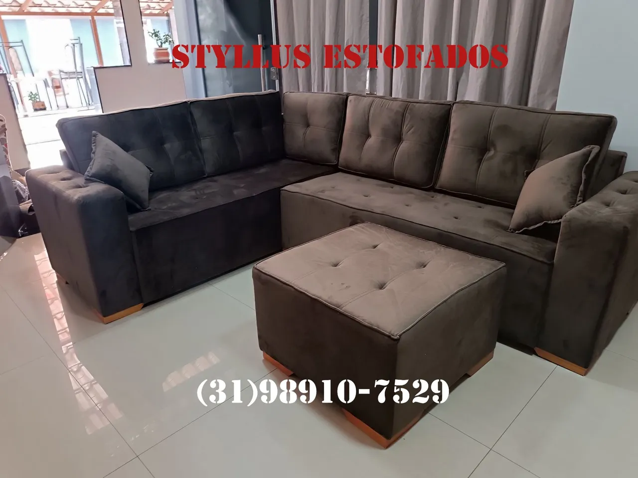 Sofá de Canto Estofado, novo, com design moderno e confortável. Perfeito para sua sala de estar! Entre em contato para mais informações. Entregamos em toda a BH e região encomenda através do whatsapp (31)... ver número