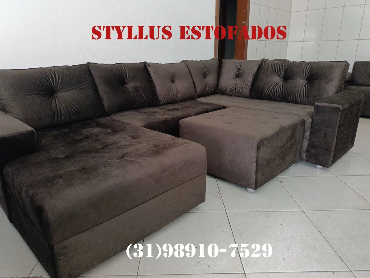 Sofá módulado de Canto em Suede Marrom, novo, confortável e elegante. Perfeito para sua sala de estar. Contém 7 lugares ou mais. Entregando em toda a BH e região encomenda através do whatsapp (31)... ver número