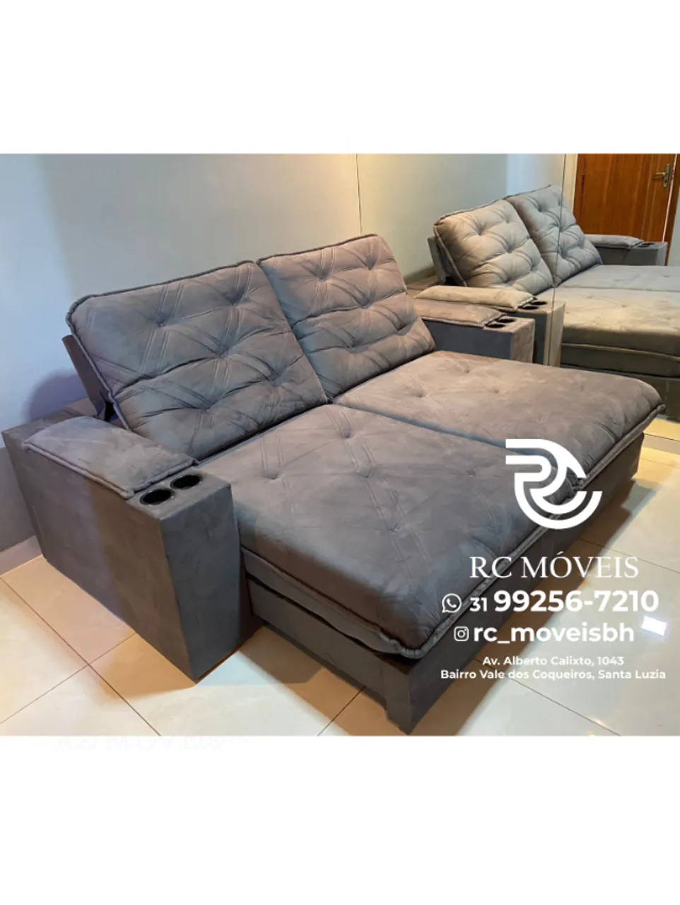 Transforme sua sala com o Sofá Cuiabá, modelo retrátil e reclinável que une elegância, conforto premium e praticidade, com porta-copos embutido para o dia a dia.