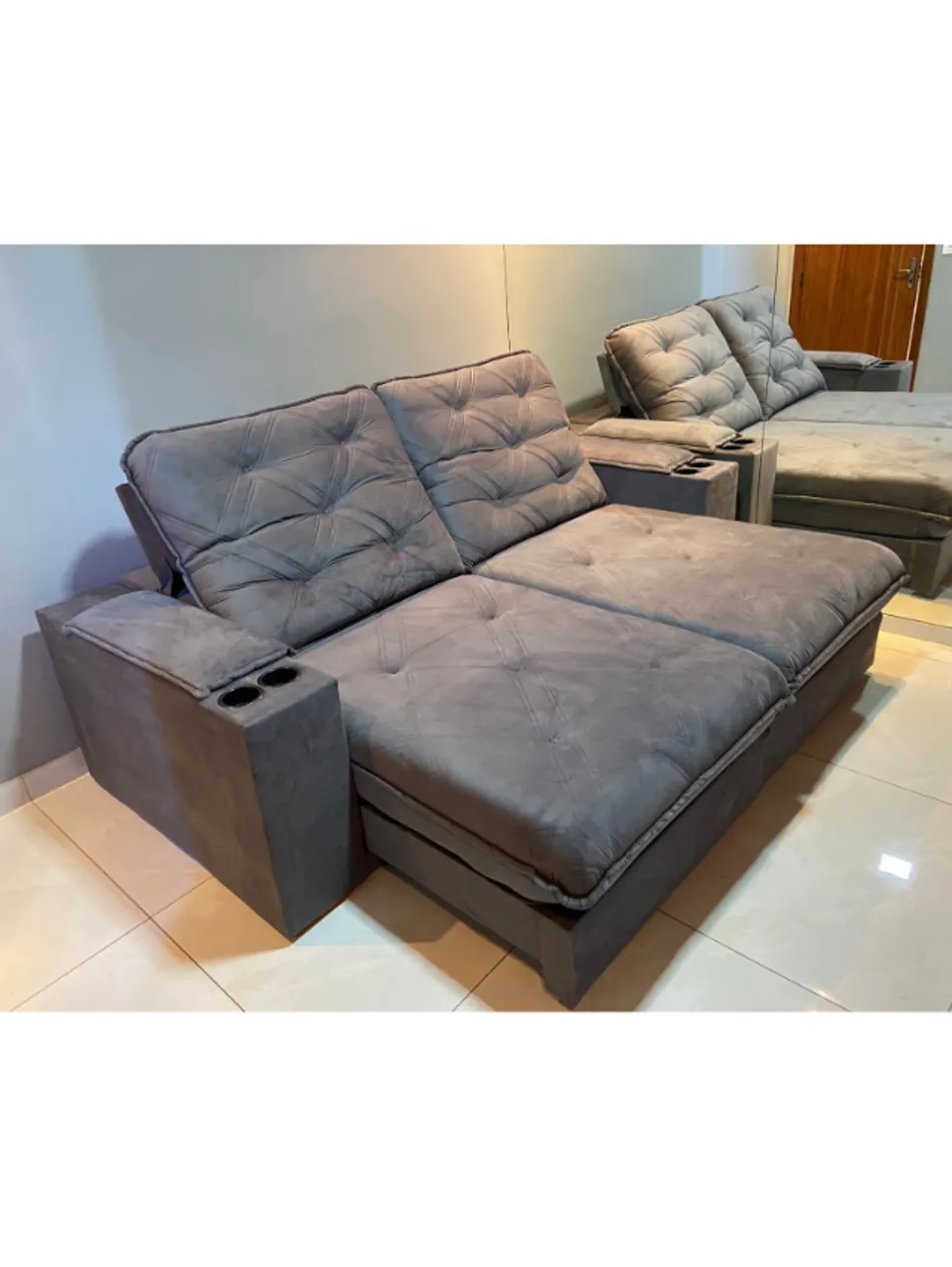 Sofá Retrátil Cuiabá com Porta-Copos e Molas Ensacadas