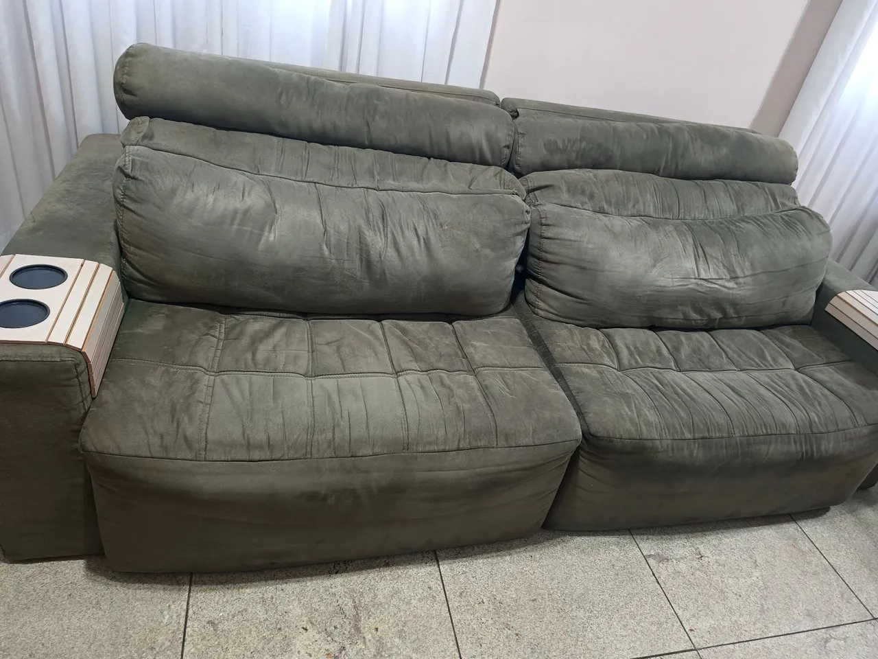 Apresentamos um sofá retrátil em excelente estado, perfeito para relaxar e aproveitar momentos de conforto. Design moderno e funcional, ideal para sua sala!
