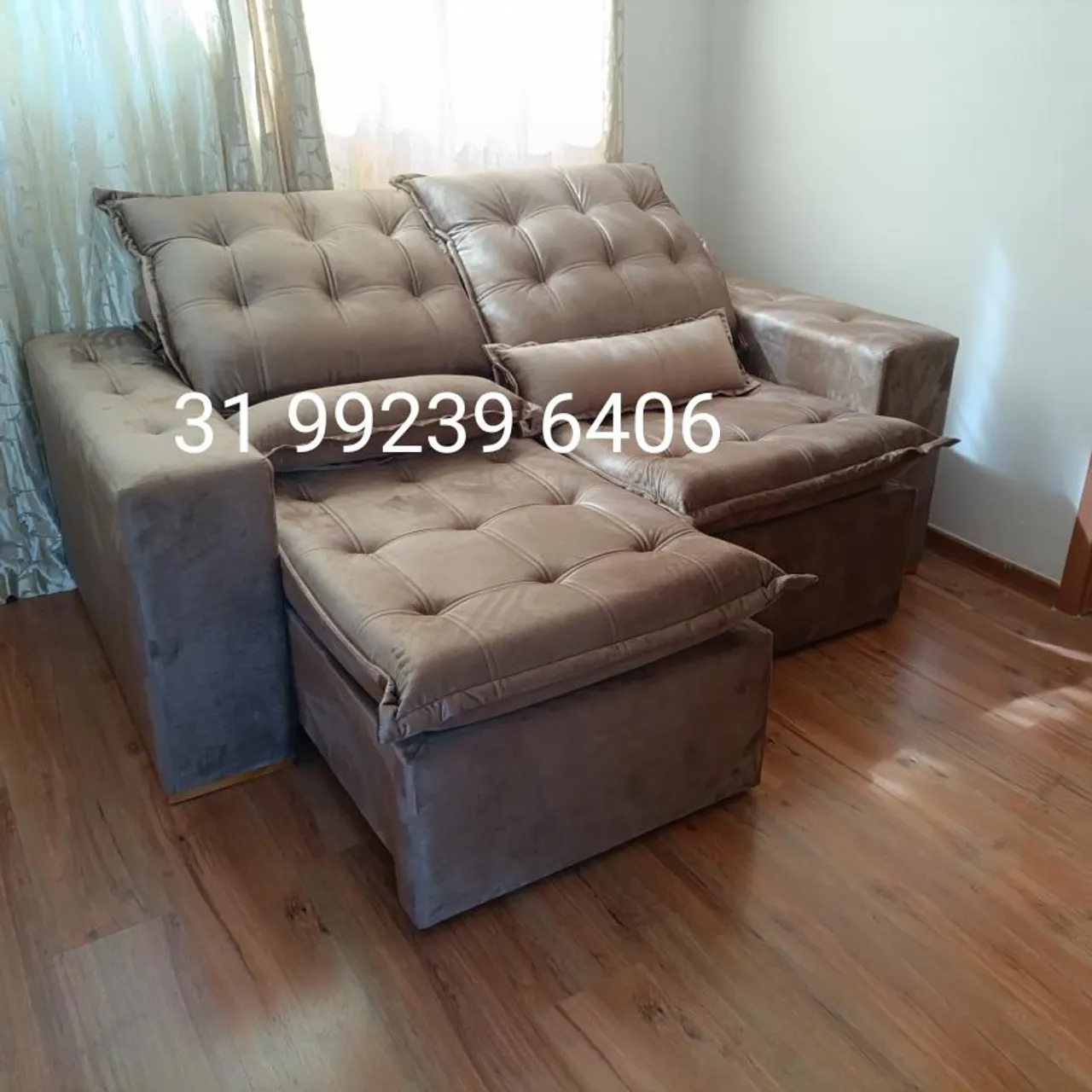 Sofá Retrátil com acento pilow 16cm de excelente qualidade em tecido bege, confortável e moderno. Perfeito para sua sala de estar. Mais informações e pedido chamar no WhatsApp