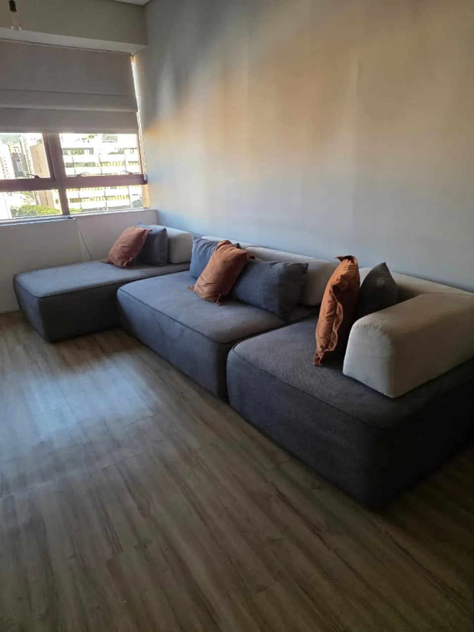Sofá modular suprema estofados, ideal para compor seu ambiente com elegância e conforto. Design moderno e versátil para se adaptar a diferentes espaços. Encostos removíveis e módulos adaptáveis , estrutura em perfeito estável com algumas manchas de limpeza que são possiveis de retirar em uma lavagem profissional. Para retirada no endereço .