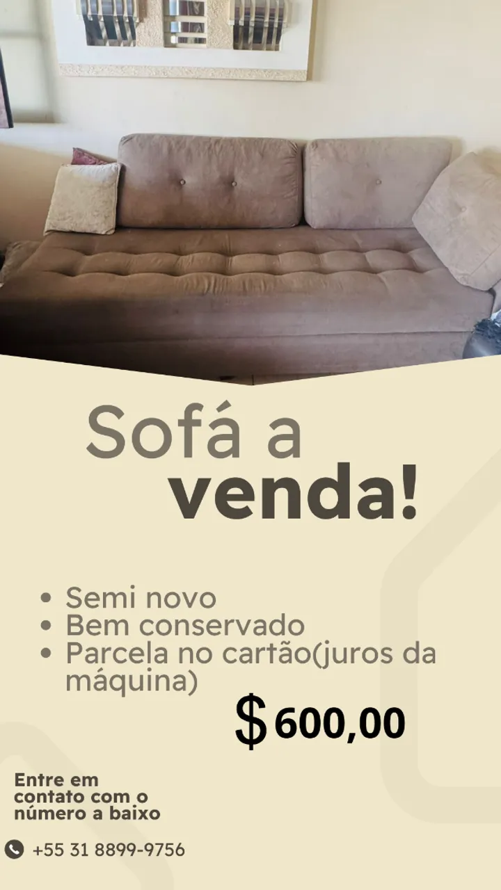 Aproveite esta oferta imperdível! Sofá espaçoso e confortável, perfeito para relaxar e receber visitas. Design elegante e ótimo estado de conservação.