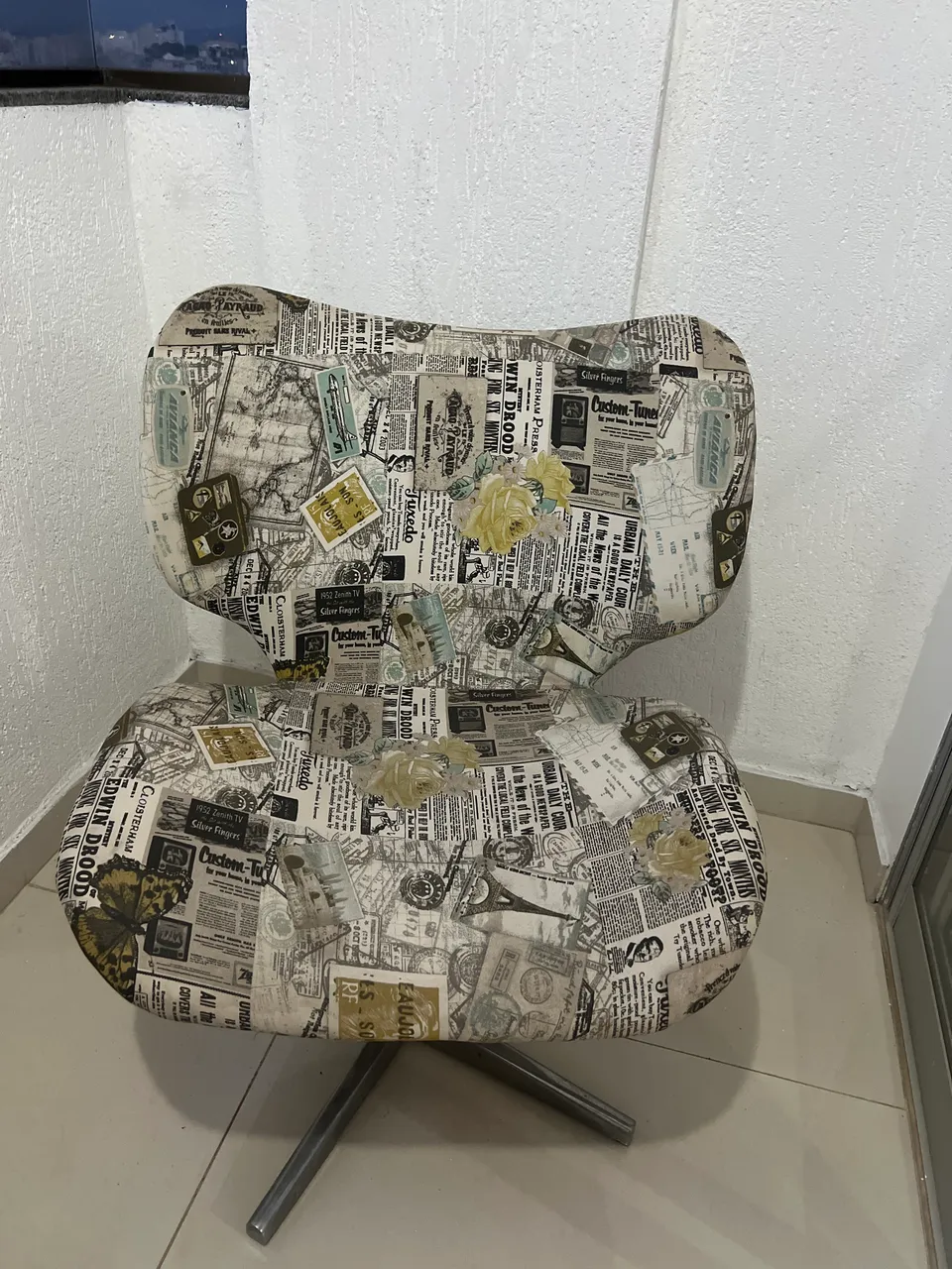 Apresentamos a você a poltrona giratória perfeita para o seu espaço! Com design elegante e estampas vintage, esta poltrona é o toque de charme que faltava. Conforto e estilo em um só lugar.