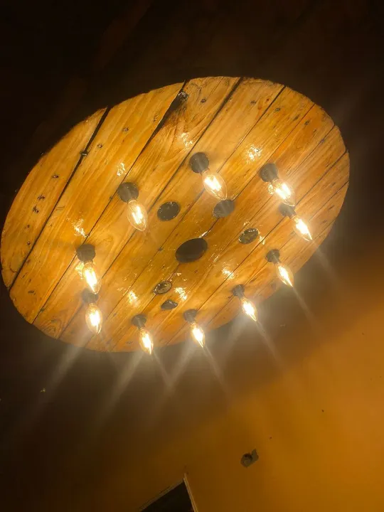 Ideal para seu Comércio Loja Rústico Lustres de Carretéis com lâmpadas de Filamentos 80cm R$500,00 1Metro R$650,00 Chamar no ZAP