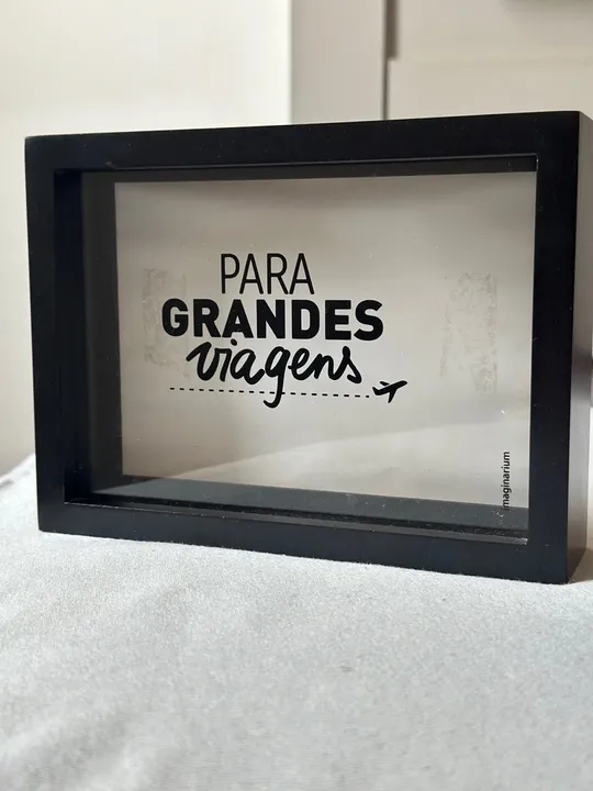 Quadro Decorativo, cofre e porta retrato, ideal para decorar sua casa e inspirar suas viagens. Com a frase 'Para Grandes Viagens', ele é perfeito para quem ama viajar e coleciona memórias.