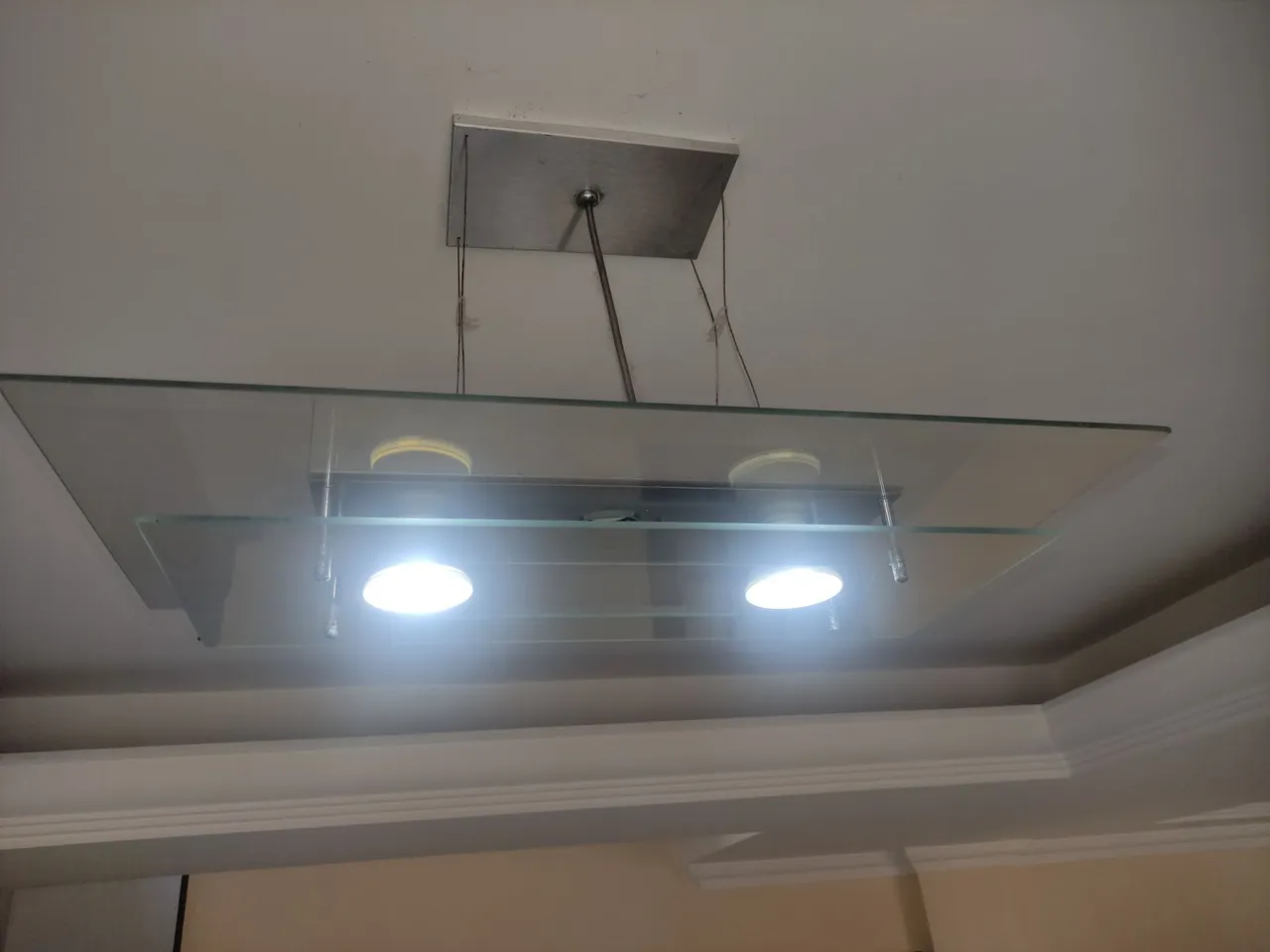 Estilo moderno e de fácil instalação, este pendente é ideal para colocar em cima de uma mesa de jantar.