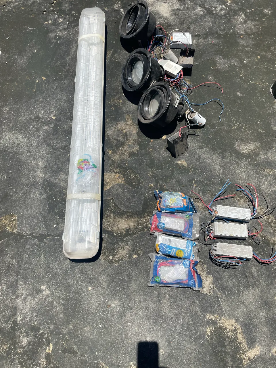 3 Refletores, 1 luminária , reatores e caixas 4 x 4 , tudo por 100,00.