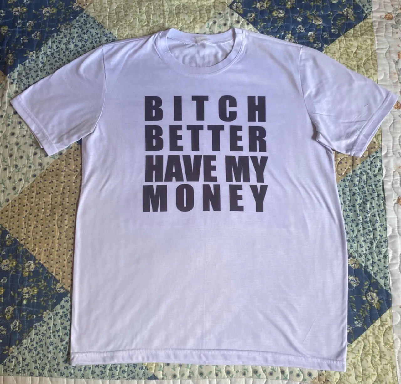 Camisa com frase de Rihanna 'BITCH BETTER HAVE MY MONEY'. Perfeita para quem gosta de ousar no visual e expressar sua personalidade. Tamanho M