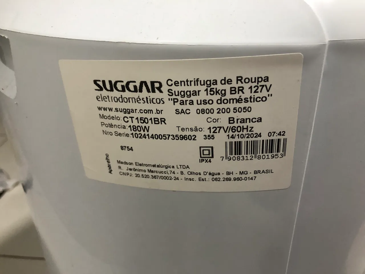 ? Centrífuga de Roupas 15kg Suggar CT1501BR Branca 127V