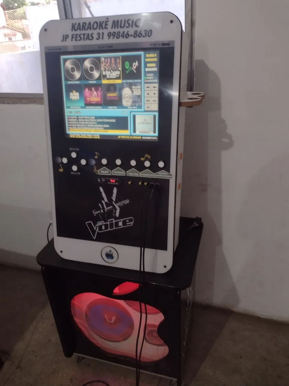 Karaokê para locação, milhares de músicas para cantar, das atualizadas até às mais antigas, também é jukebox, pode parear bluetooth e pendrive, pontuação no final, 2 microfones. Favor consultar a área que consigo atender e o frete.