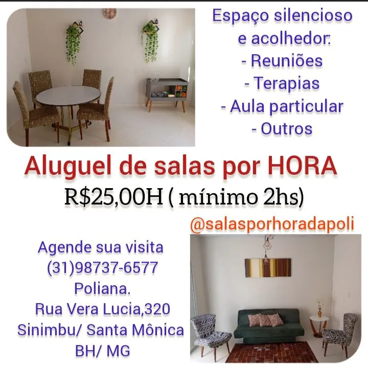 Aluguel de salas por HORA. R$25,00 *Mínimo 2hs ? Região Pampulha, próximo a Venda Nova. ?