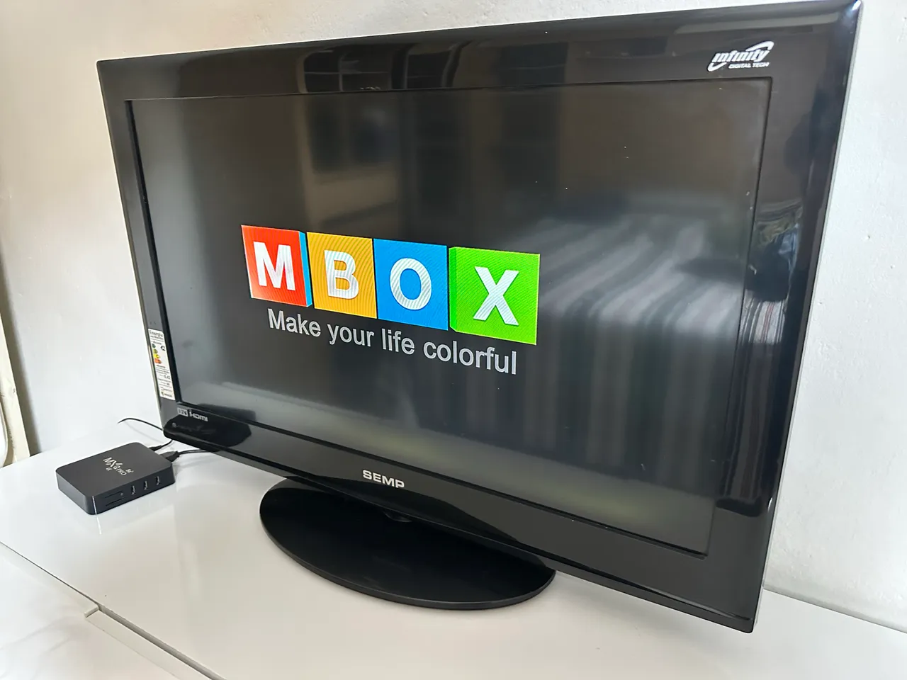 TV em boas condições. Ao ligar, aparece uma pequena mancha na tela, que desaparece após cerca de 2 minutos de uso. Acompanha aparelho Android Box como brinde.