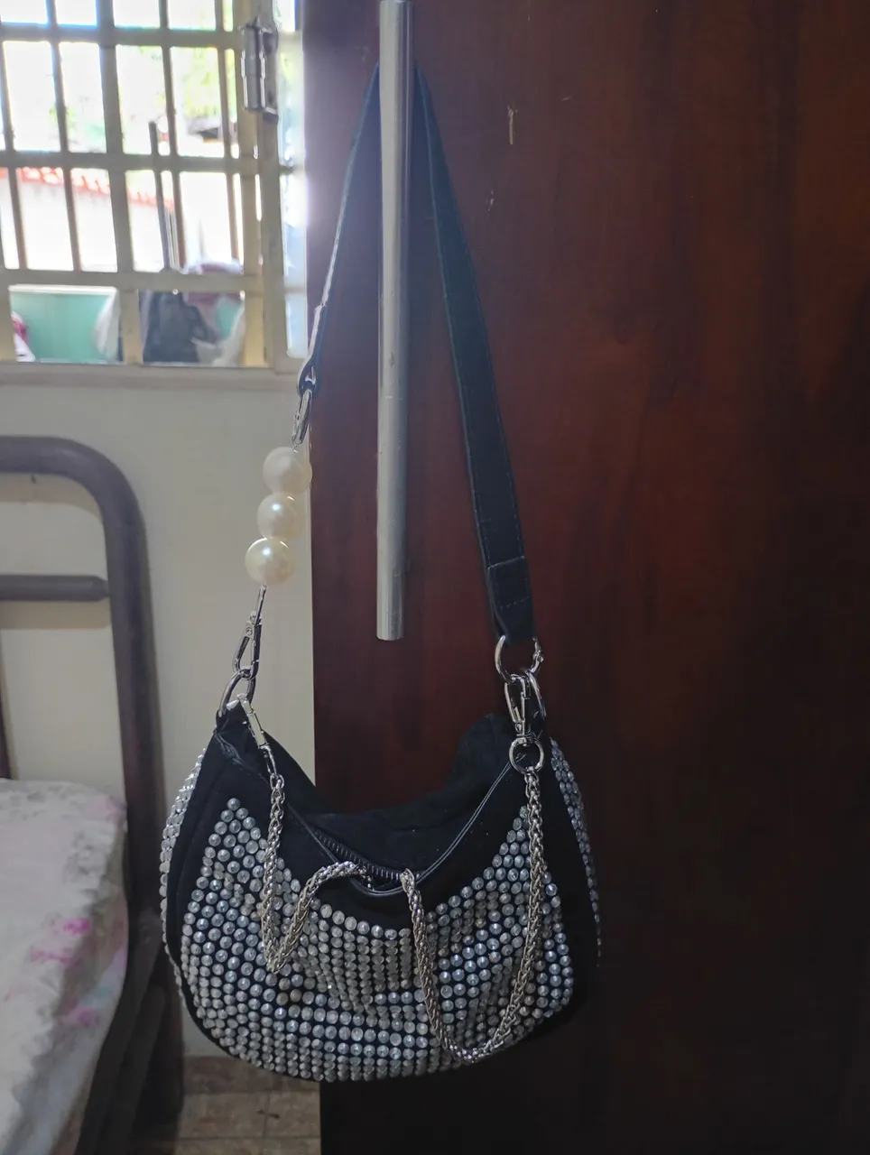 Uma bolsa nova pra festa(20,00) Bolsa grande de couro(40,00) Short jeans tamanho 54 novo,mais forma é pequena,serve 48.(20,00)
