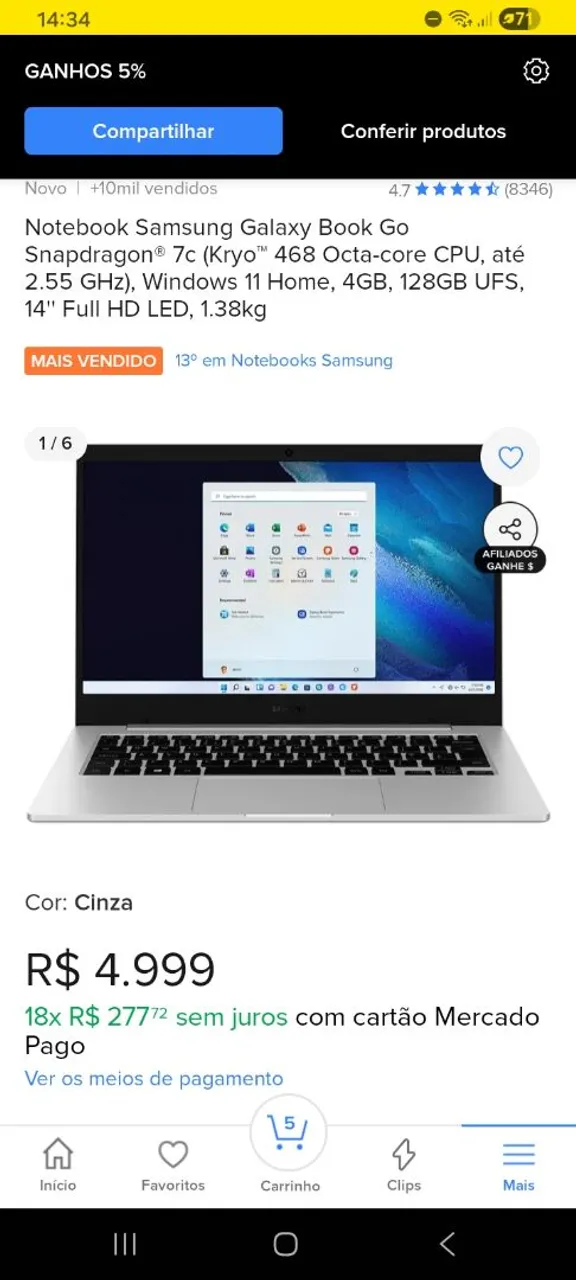 Experimente o desempenho excepcional do Notebook Samsung Galaxy Book Go! Com processador Snapdragon 7c, tela Full HD de 14 polegadas e design elegante, este notebook oferece mobilidade e eficiência para suas tarefas diárias. Ideal para trabalho, estudos e entretenimento.