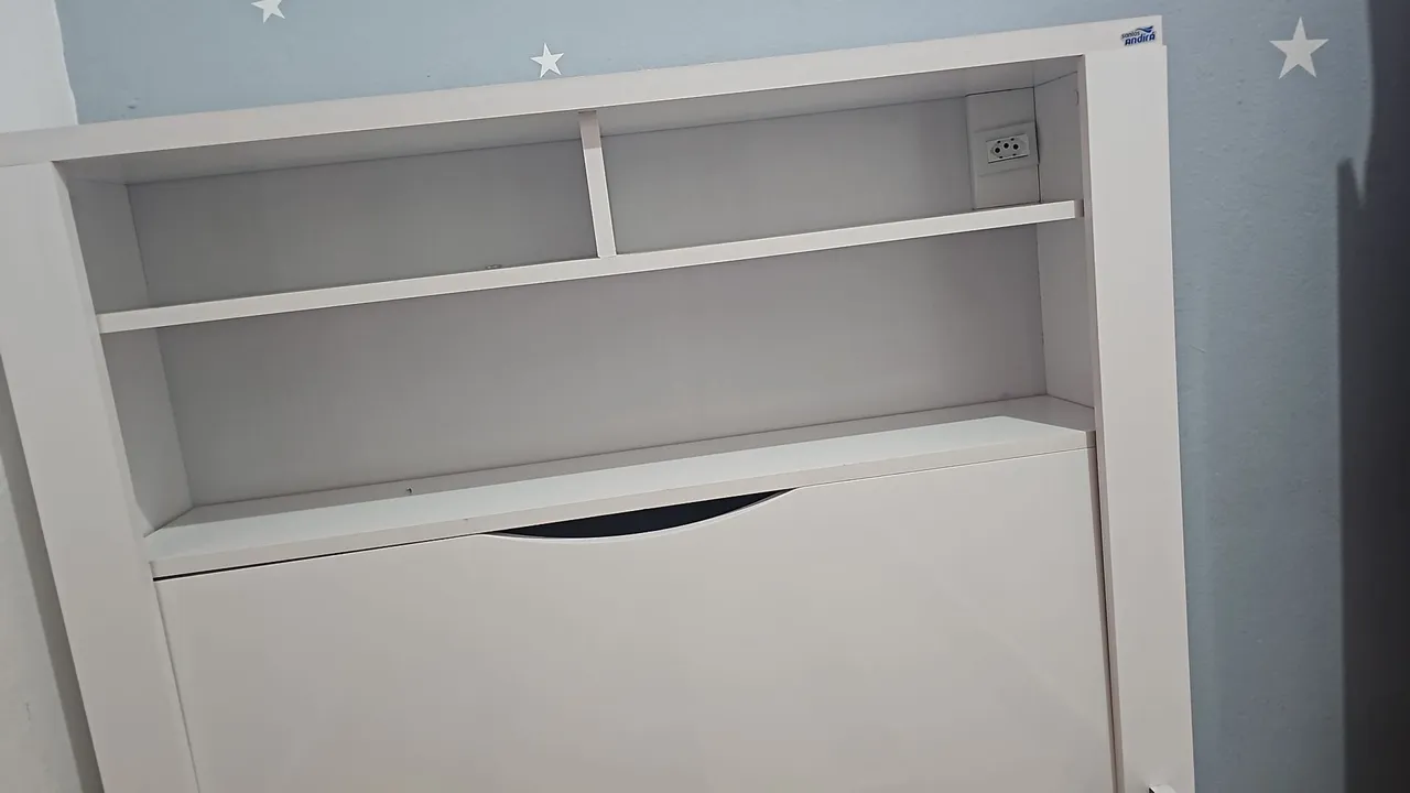 Cama de solteiro com design moderno e funcional, perfeita para otimizar o espaço do seu quarto. Possui tomada embutida, oferecendo praticidade e conforto no seu dia a dia.
