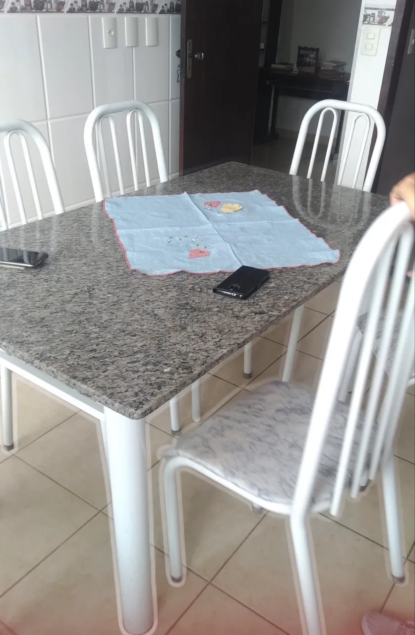 Linda mesa de mármore com 6 cadeiras, ideal para sua cozinha ou sala de jantar. Design elegante e durável para transformar seu ambiente!