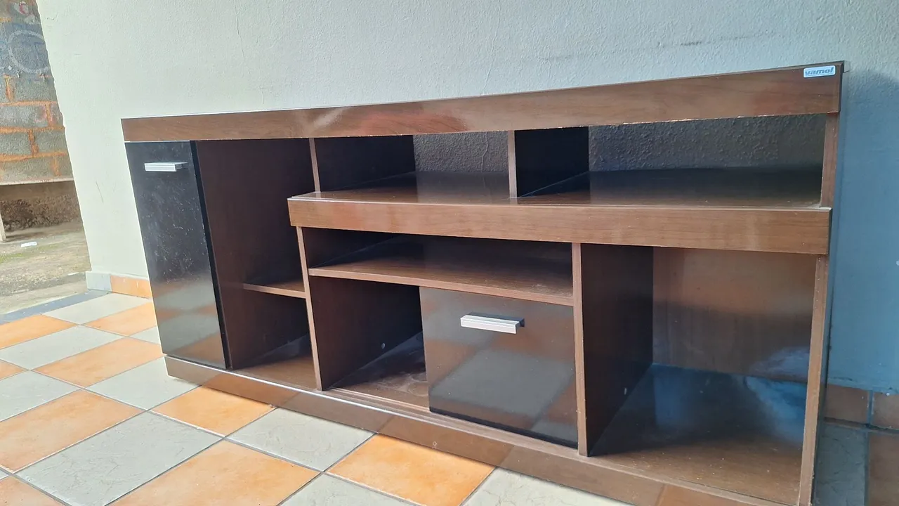 Apresentamos este rack em ótimo estado, ideal para organizar sua sala com elegância e funcionalidade. Design moderno e espaçoso para acomodar sua TV e outros aparelhos.
