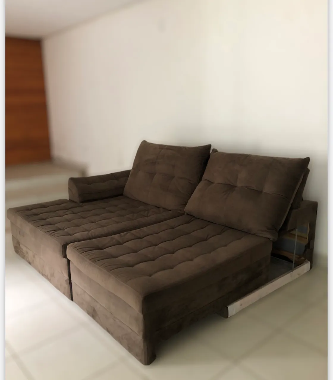 Sofá chaise e retratil luxo em chenile, reclinável (3 posições)novíssimo, pouquíssimo uso, (sem móvel de acabamento lateral)estava em ambiente home office, no qual foi retirado para ser feito quarto de casal.