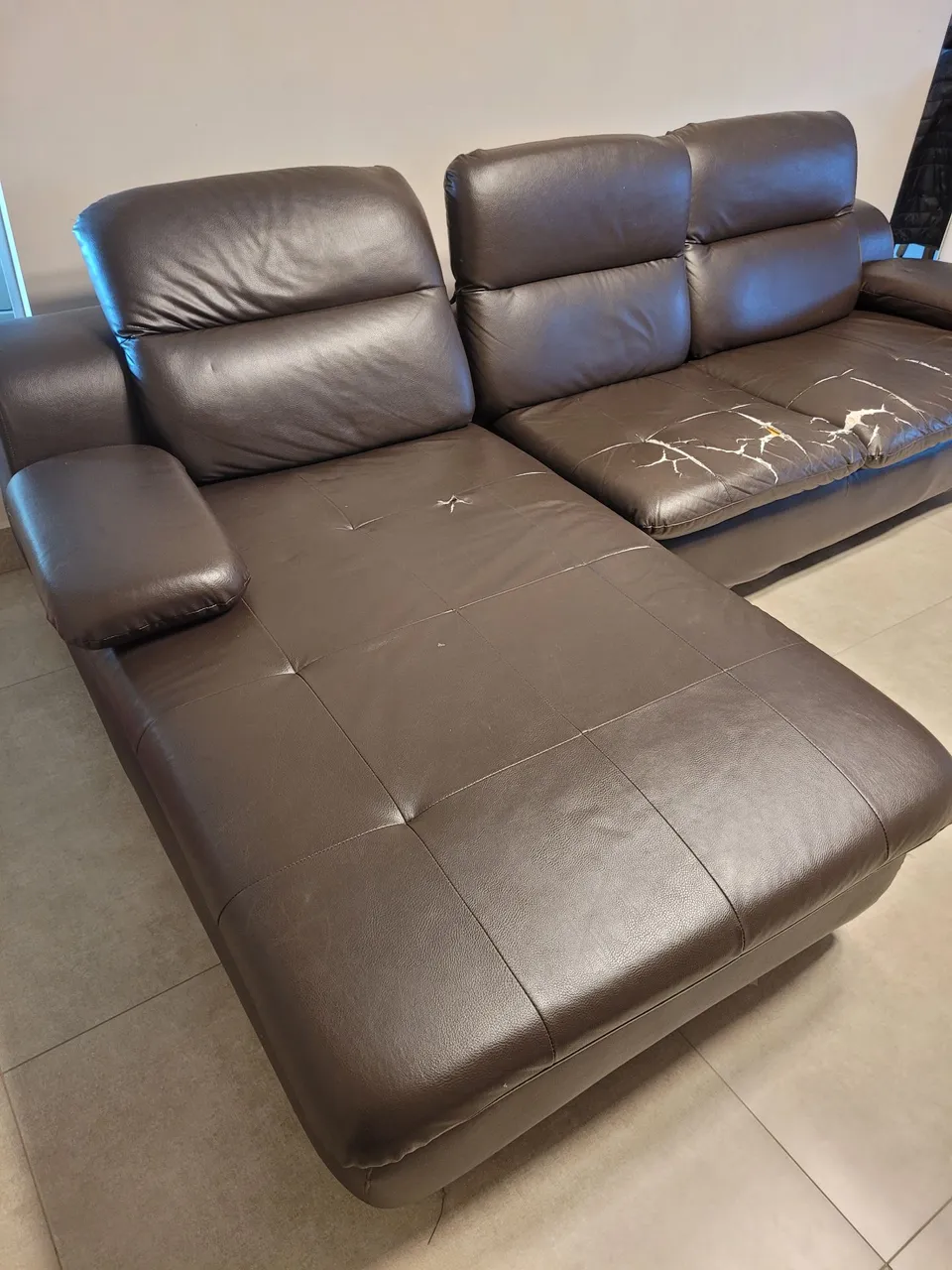 Sofá de canto espaçoso na cor marrom. Ideal para salas e ambientes amplos.