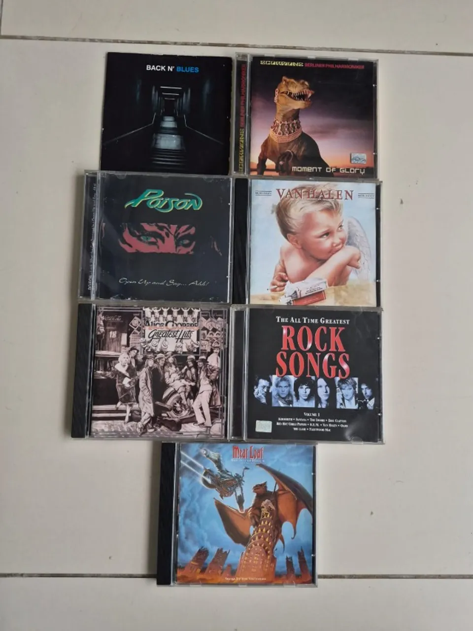 Coleção de 7 CDs por R$ 200,00. Separadamente, Back N´Blues (R$ 10,00); The All Time Greatest Rock Songs (R$ 20,00); Van Halen 1984 (R$ 20,00); Poison Open up and Say ....Ahh!!! (R$ 40,00); Alice Coopers Greatest Hits (R$ 40,00); MeatLoaf Bat out of Hell II (R$ 40,00); Scorpions Moment of Glory (R$ 40,00).