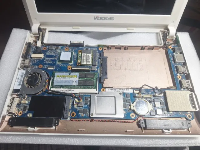 Notebook Microboard para retirada de peças. Ideal para técnicos em eletrônica ou quem busca componentes.