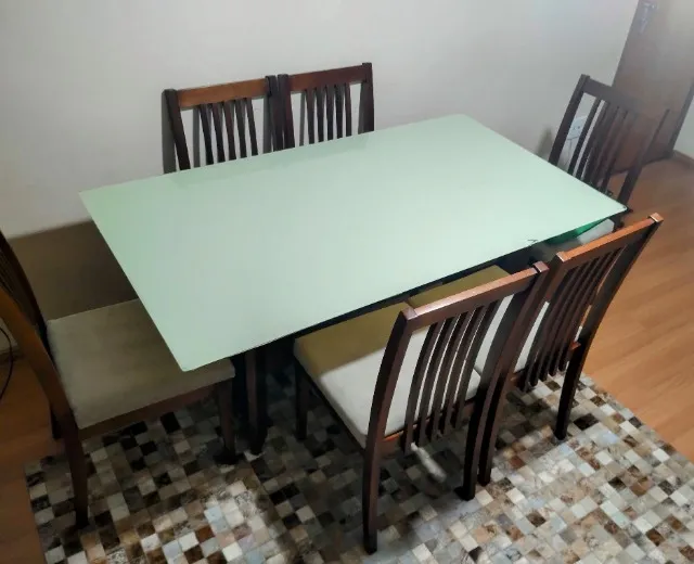 Composta de 6 lugares , cadeiras com acabamento em estofado original na cor cinza