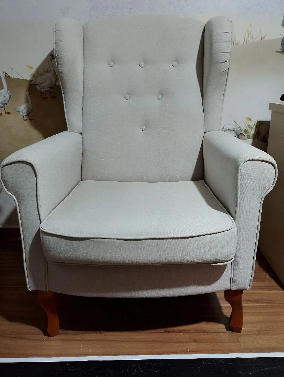 Poltrona de amamentação de alta qualidade pés de madeira, resistente, almofada solta, ótima acomodação, bolso lateral sem rasgos ou furos usada. Design clássico com encosto alto e braços acolchoados. Perfeita para relaxar e decorar seu ambiente. Conforto e estilo garantidos!
