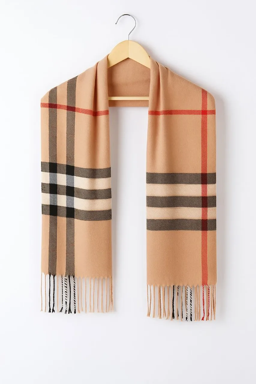 Este cachecol bege clássico com estampa xadrez é o toque de sofisticação que seu look de inverno merece!