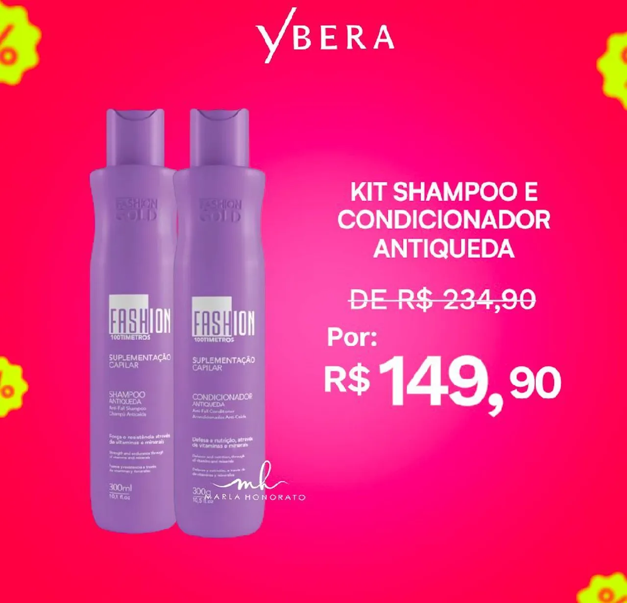 Kit Shampoo e Condicionador Antiqueda Ybera Paris Fashion Gold, ideal para fortalecer e nutrir seus cabelos, proporcionando força, resistência e defesa contra a queda. Garanta já o seu e tenha cabelos radiantes!